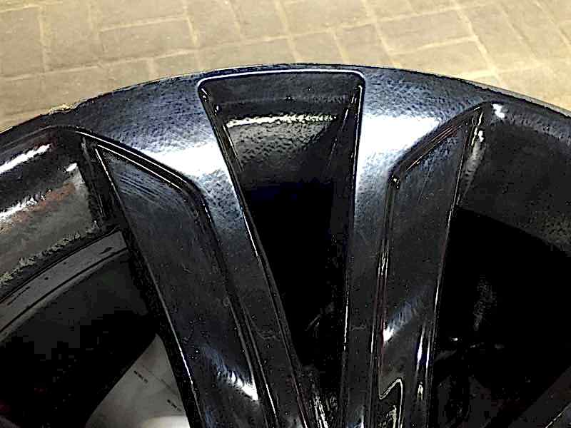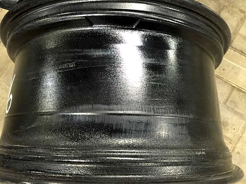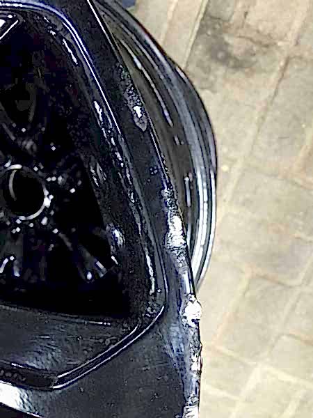 Посмотрите фотографии покрашенных дисков - покраска производилась в один ТОЛСТЫЙ слой Пин-ап без грунта и лака. (это видно на сколах краски) При этом также был нарушен процесс полимеризации краски и толщина слоя - отсюда большая шагрень на поверхности.